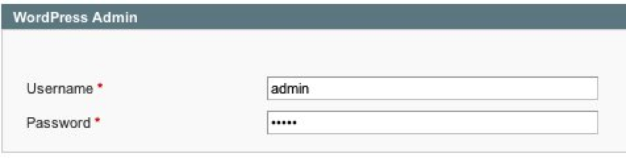 With the Username and Password that you created when you installed WordPress, fill in the Username and Password fields and click the ‘Save’ button in the upper right of the page. Magento is now configured to automatically log you into your WordPress Admin.